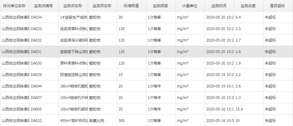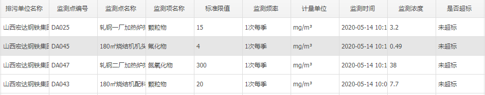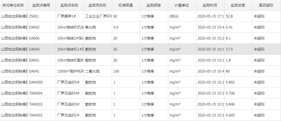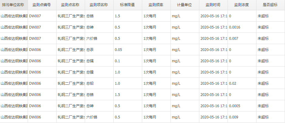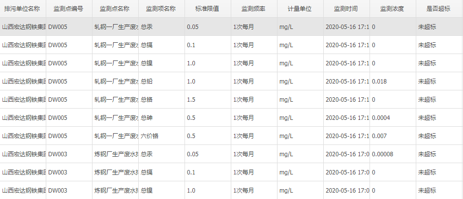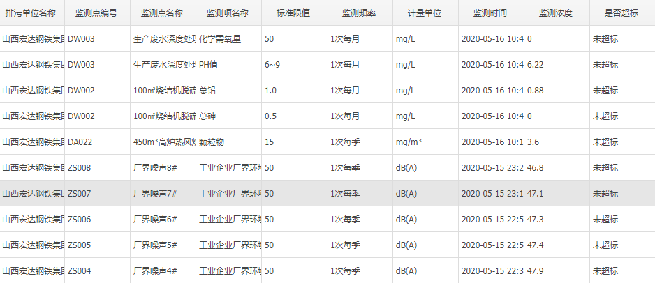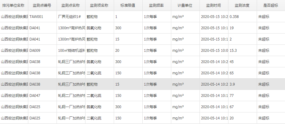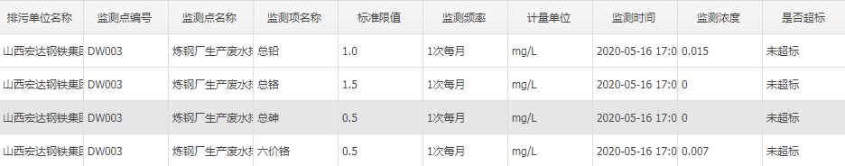 2020年五月份自行监测数据