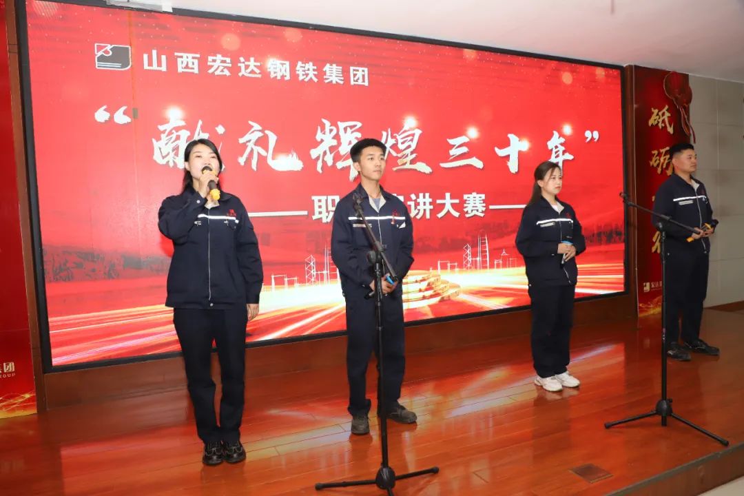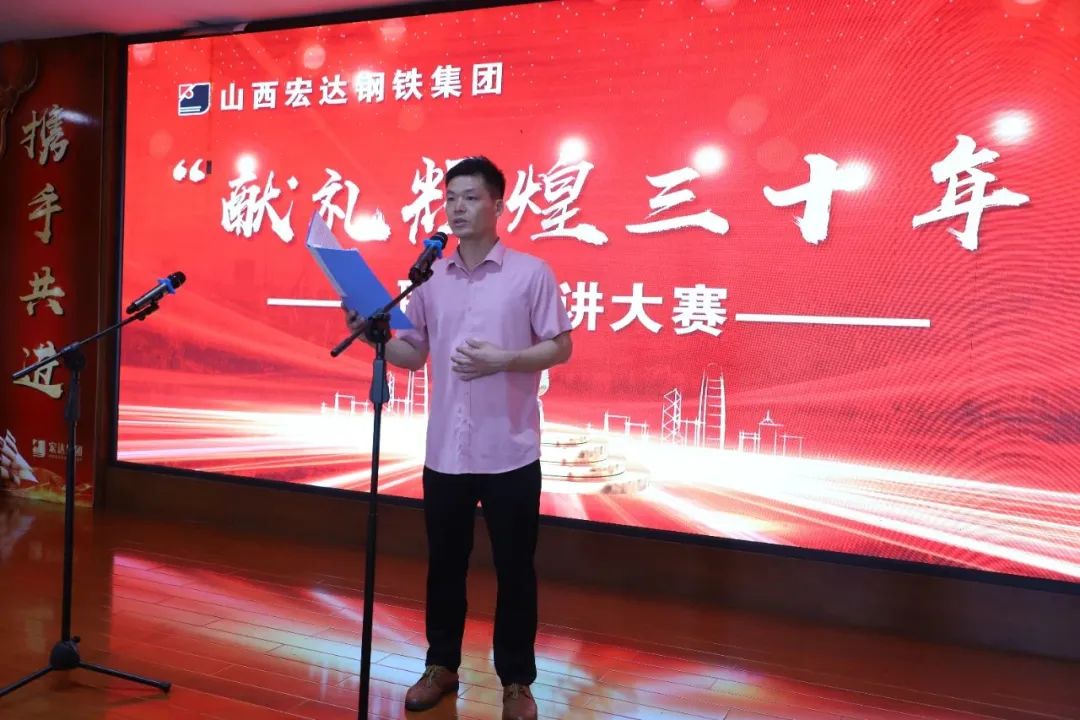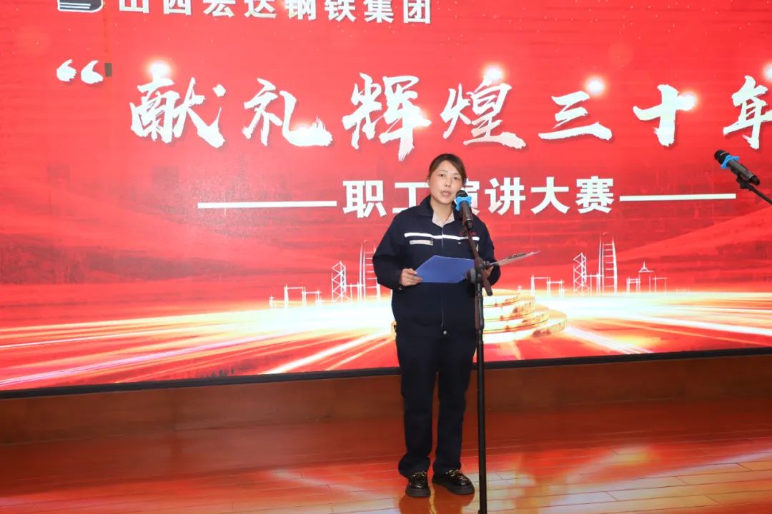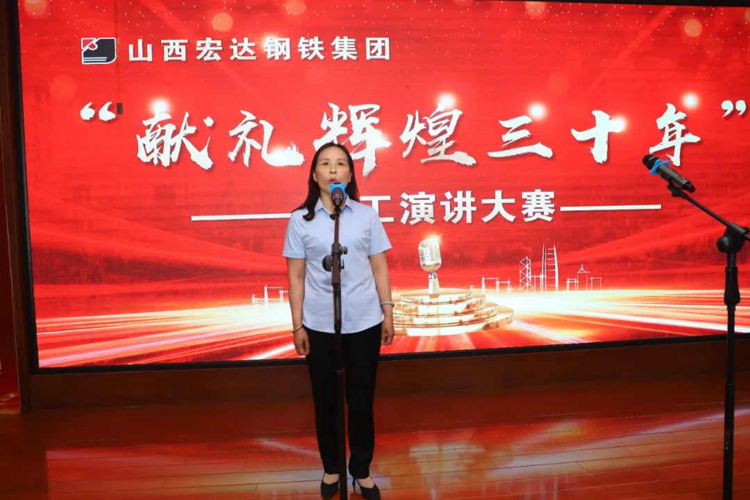“鲜衣怒马少年时,不负韶华且行知”。为隆重庆祝公司成立三十周年,传承弘扬公司三十年发展历程中形成的艰苦奋斗、激流勇进、追求卓越、矢志报国、担当奉献的宝贵精神,增强广大员工对“宏达精神”的认知、认同,激励广大职工积极向上、奋发有为的工作热情,推动集团各项工作健康发展,5月16日上午,宏达集团在机关大楼八楼会议厅隆重举办“献礼辉煌三十年”主题演讲比赛(初赛)。集团总经理刘世峰、副总经理张丽出席活动,来自集团各条战线的30余名选手参加比赛。 张丽在致辞中指出,集团创建三十年来,张会民董事长带领我们全体宏达人,驾乘改革东风,逐梦工业强国,用无数心血和汗水,将吕梁山麓贫瘠的石碜地一步步改造为生机勃发的现代化绿色钢城。在集团创建三十周年纪念日即将到来之际,我们隆重举办“献礼辉煌三十年”演讲比赛,就是要更好地总结提炼、传承弘扬我们公司三十年风雨兼程、激流勇进、坚守初心、报国惠民的宝贵精神。她希望所有选手都能在比赛中发挥出最好水平,充分展示宏达儿女的崭新风采,希望大家把这种良好的精神状态贯穿到日常生产工作中,努力适应公司智能化、现代化发展迫切需要,立足岗位、恪尽职守、精益求精、争先创优,在集团高质量发展的新征程中干出新气象、展现新作为、做出新贡献。 比赛过程中,参赛选手们精神饱满,激情荡漾,用心用情结合自身工作职责和工作经历,通过例举鲜活的实例诠释着集团三十年来的沧桑巨变,展现着积极向上、活力迸发的职工风采。热情洋溢、声情并茂的演讲,把比赛推向一个又一个高潮。 台下“亲友团”们掌声不断,向选手们传递着热烈的祝愿与支持。现场评委们针对每组选手的演讲作出评分。