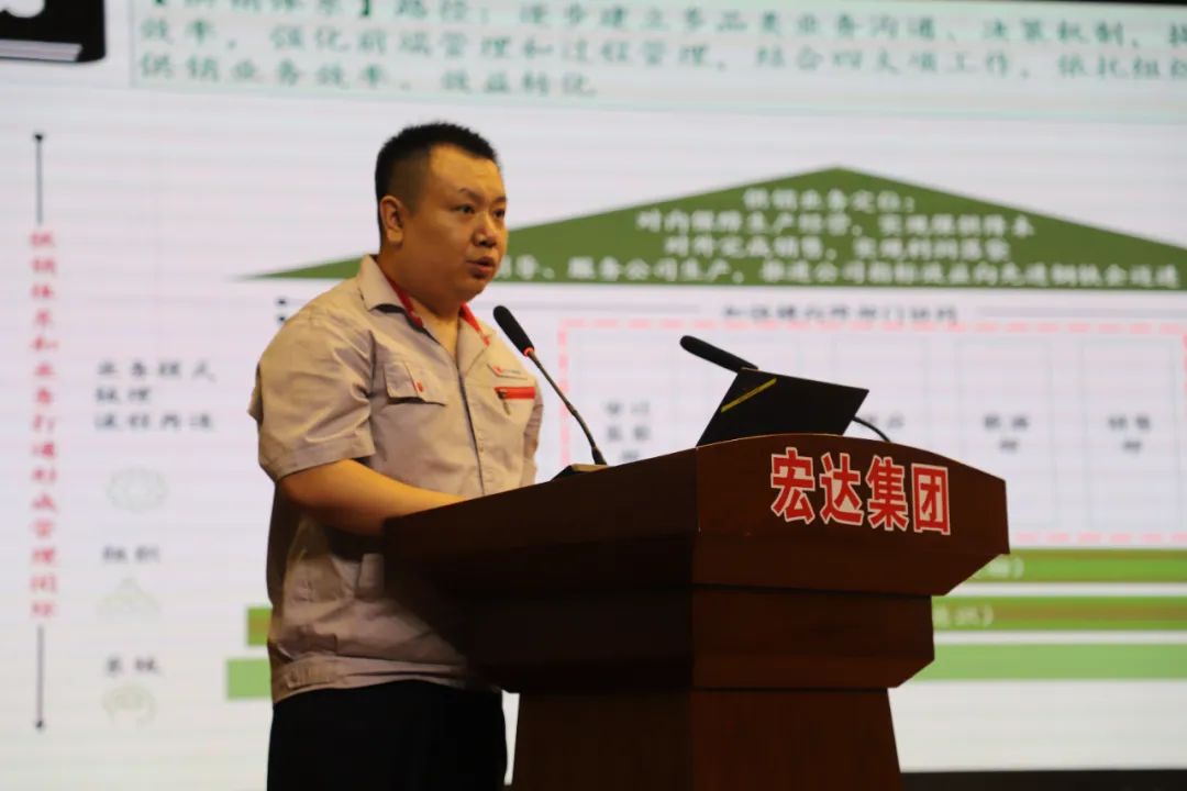 管理提升项目开展两个多月来,公司上下统一思想、统一行动,全员参与,通过强措施、严落实,切实推动精益管理取得明显实效。9月9日上午,集团管理提升再动员大会隆重召开,会议分析总结了管理提升项目前阶段成效,安排部署下阶段工作目标任务。集团领导班子全体成员、各厂部长、工段长以上干部共计三百余人参加会议。会上董事长张会民宣读了公司对刘跃威、张玺成两位同志的任命决定,并做重要讲话,号召大家全员同心,目标同向,再鼓干劲,为再创宏达辉煌明天而共同努力奋斗。 刘世峰带领全体参会人员进行集体宣誓。洪亮的誓言响彻会场,磅礴的朝气与奋进的精神感染着每一位参会人员。 董事长张会民宣读公司任命决定,任命刘跃威同志为集团公司副总经理(主管生产);任命张玺成同志为集团公司总工程师兼技术中心主任。 集团新任副总经理(主管生产)刘跃威作表态发言。他说,很荣幸在公司开展管理提升项目的关键时刻加入宏达团队,我将不负集团领导的信任和期望,团结带领宏达生产技术管理团队与生产一线员工通力合作,为宏达的蓬勃发展锦上添花,贡献自己的力量。 为更好地推动精益管理的理念、方法、措施与公司的具体实际相结合,确保项目取得预期成效。会上,原料总厂厂长张昌平、冶炼总厂厂长吴彦泽、炼钢厂厂长董富利、轧钢一厂厂长赵常宽、轧钢二厂厂长武康英、供应部部长宁鹏云分别就各自厂部管理提升项目开展成效及存在的不足做了梳理汇报。 管理提升项目开展以来,公司各级管理人员和永锋专员并肩奋斗,从14个维度开展工作,目前,工作亮点日渐凸显:原料厂在烧结质量提升方面,转股强度、内返比例均有所改善,开展用电设备分析,降低电力成本;冶炼厂采取“打基础、立目标、强措施”三步走,炉前出铁组织方面进行了多项改革改善,保证了炉况的顺行和稳定,燃料成本降低8公斤以上;炼钢厂细化梳理51项降本改善措施,围绕降低钢铁料、合金、能源介质消耗进行降本增效;轧一总厂通过优化提升泵使用方式降低频率、打包机规范使用等措施达到节电效果,轧二总厂与6月份指标相比,切损、电耗、煤耗、氮气均有所降低。供销系统方面通过采购量价对比、合同约定对比、采购渠道拓展等措施,降低采购成本,提升采购质量和结算漏损。