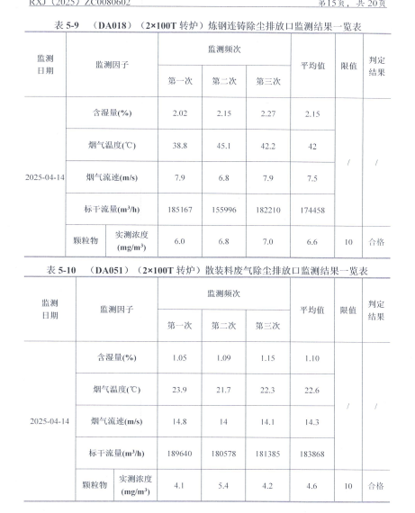 2025年第二季度污染物自行监测报告